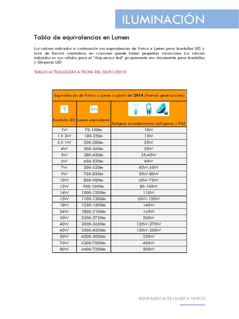 Equivalencia led vatios a lúmenes.